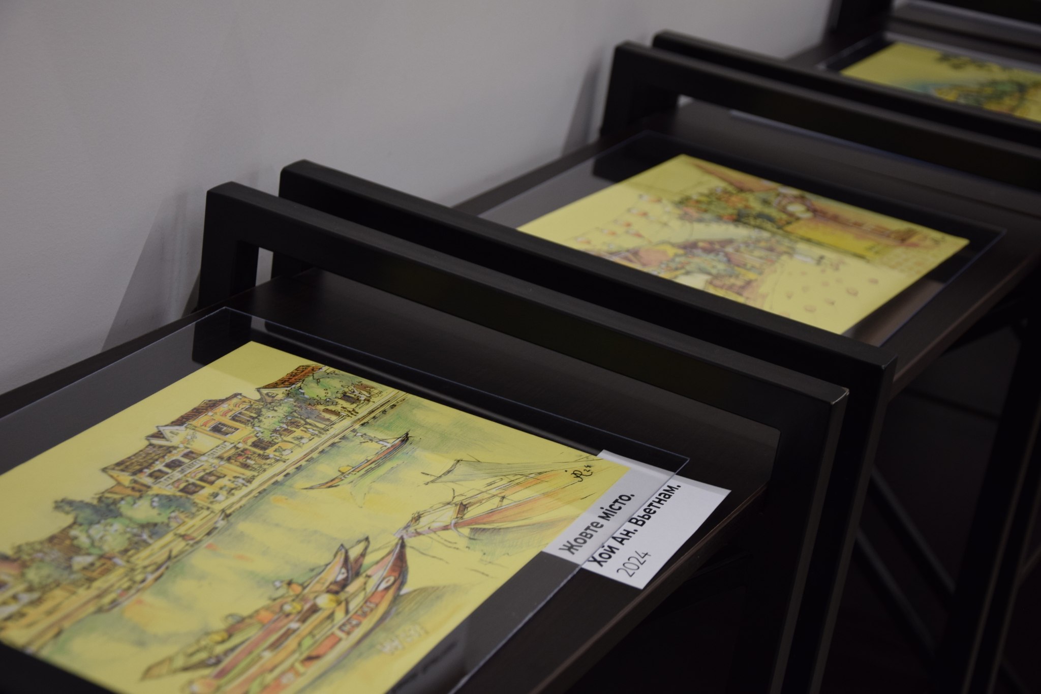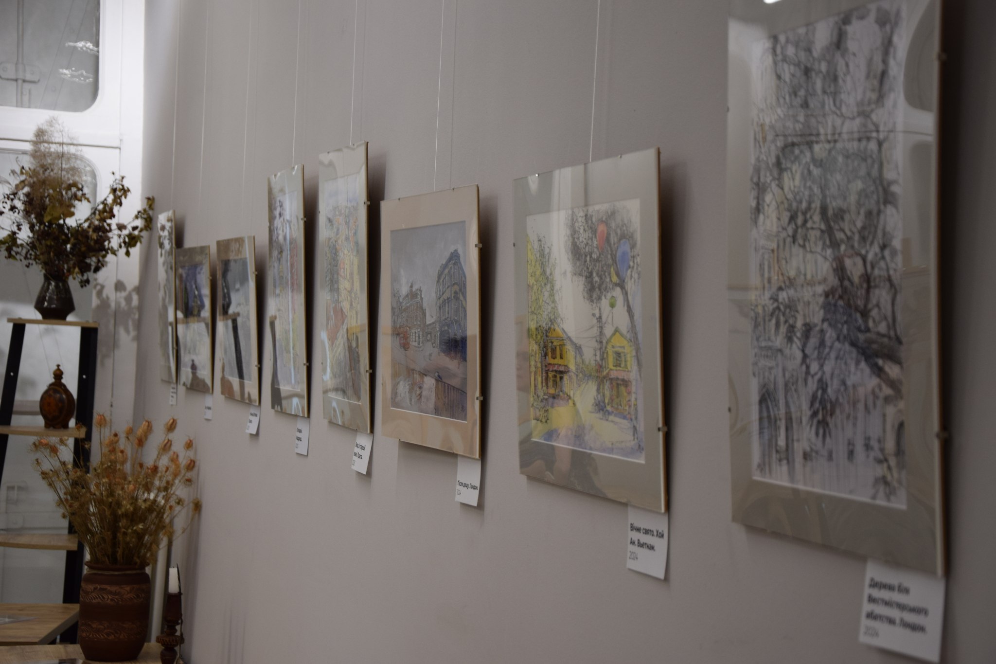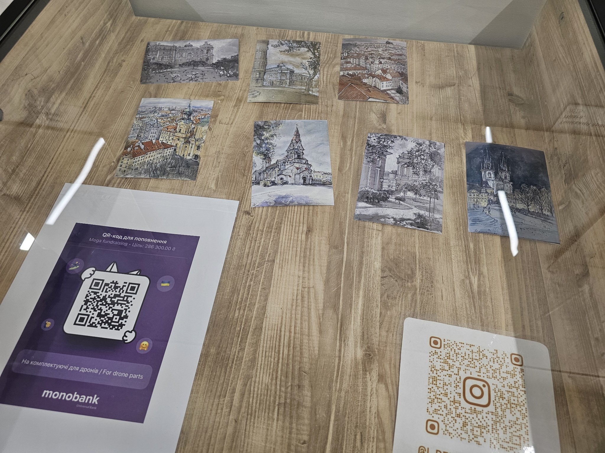 На виставці можна придбати листівки з роботами Ірини, зібрані кошти підуть на закупівлю комплектуючих для дронів 112 окремої бригади ТрО.