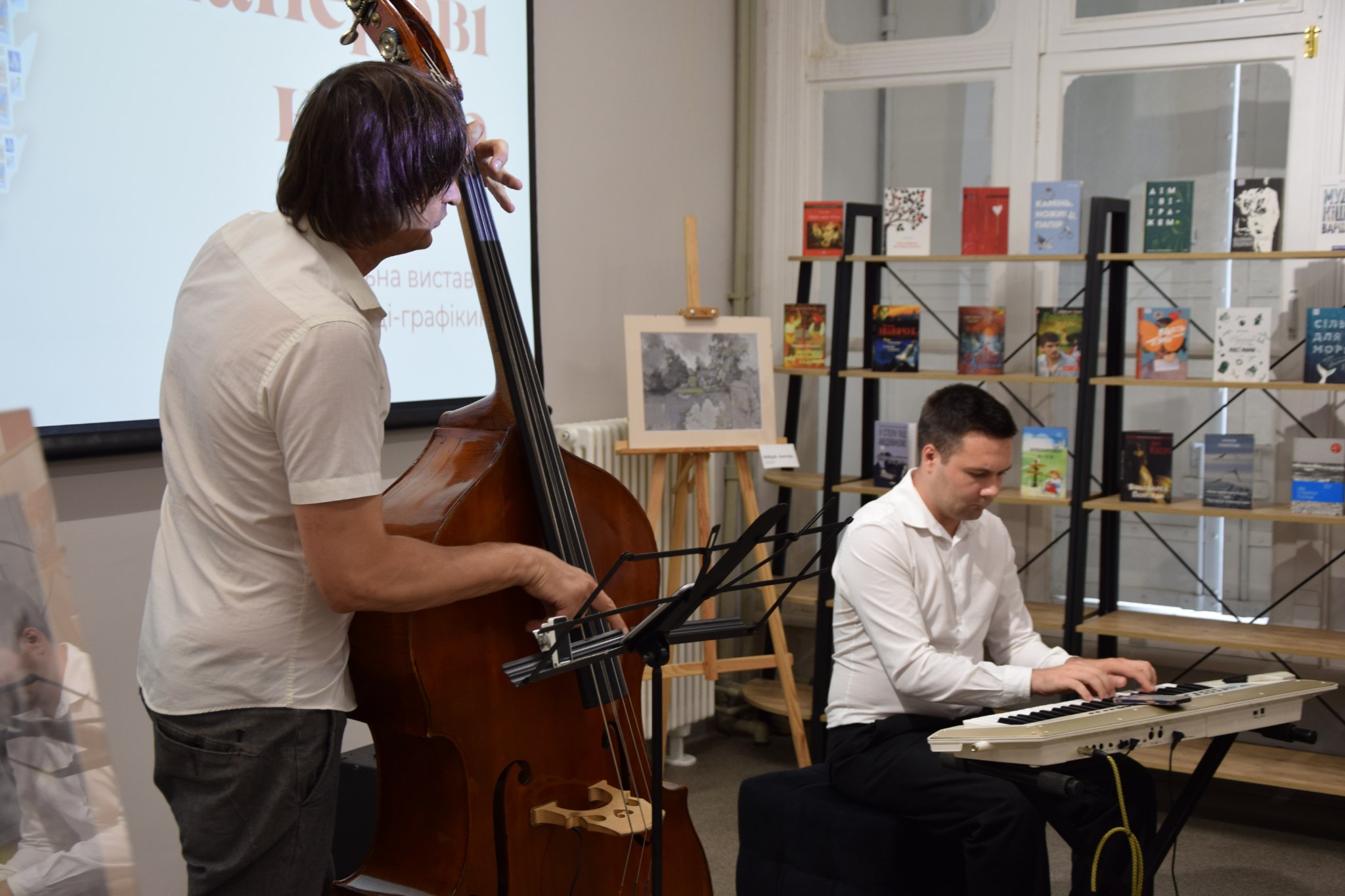 Відкриття виставки супроводжували джазові мелодії у виконанні дуету Дмитра Огняннікова та Віталія Фесенко. Їхнє майстерне виконання джазової класики на фортепиано та контрабасі наповнило простір атмосферою свята і пригод.