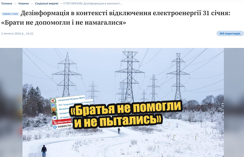 Traditional pro-Russian outlets such as Komsomolskaya Pravda and some regional outlets are less aggressive than anonymous Telegram channels, but they also distort reality. Instead of explaining energy interdependence, the emphasis shifts to the threat from Ukraine. The news is often presented in the format of danger messages from Ukrainian drones, which creates the message that Ukraine is the source of danger, not the victim of Russian aggression. The logical chain here is deliberately broken, and the responsibility is being shifted to Kyiv or Chisinau.