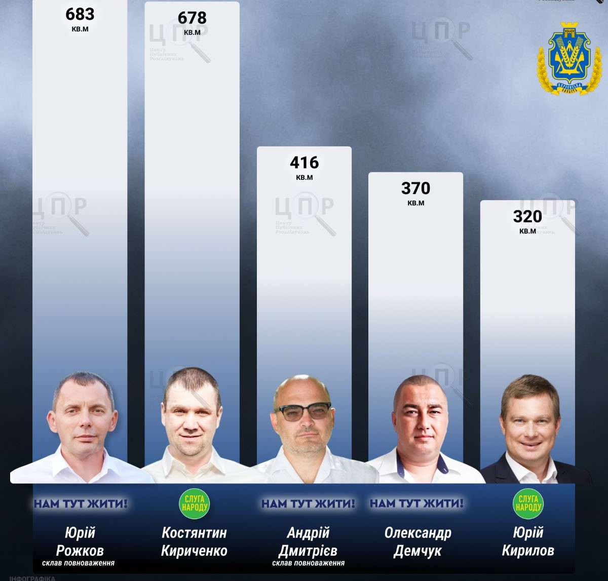 Yuriy Rozhkov from the party "We Live Here" has the largest living space among the MPs - 683 square meters in total. He personally owns a 554.5-square-meter house in the Kherson community, and his wife Victoria owns a 46.7-square-meter house and an 81.4-square-meter apartment in Kherson.