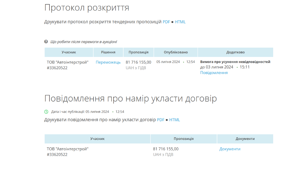 SCREENSHOT: Prozorro