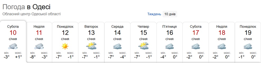 During the week of January 12-19, meteorologists, according to the Sinoptik website, predict a cold snap from a maximum air temperature of one degree Celsius expected during the day on January 10 to eight degrees below zero, which may drop to eight degrees below zero at night on January 11.