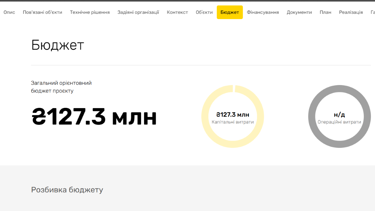 The total estimated budget of the project is UAH 127.3 million. Capital expenditures are planned for construction in 2027-2028: UAH 3.7 million in 2027 and over UAH 123.5 million in 2028. No funding source has been confirmed as of today.