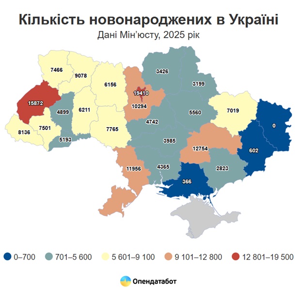 However, there are also regions that have made gains in the number of newborns. For example, in Lviv region, the birth rate increased by 1.5%, which is 230 more babies than in 2024. In Volyn region, the increase was 0.6%, or 44 children.
