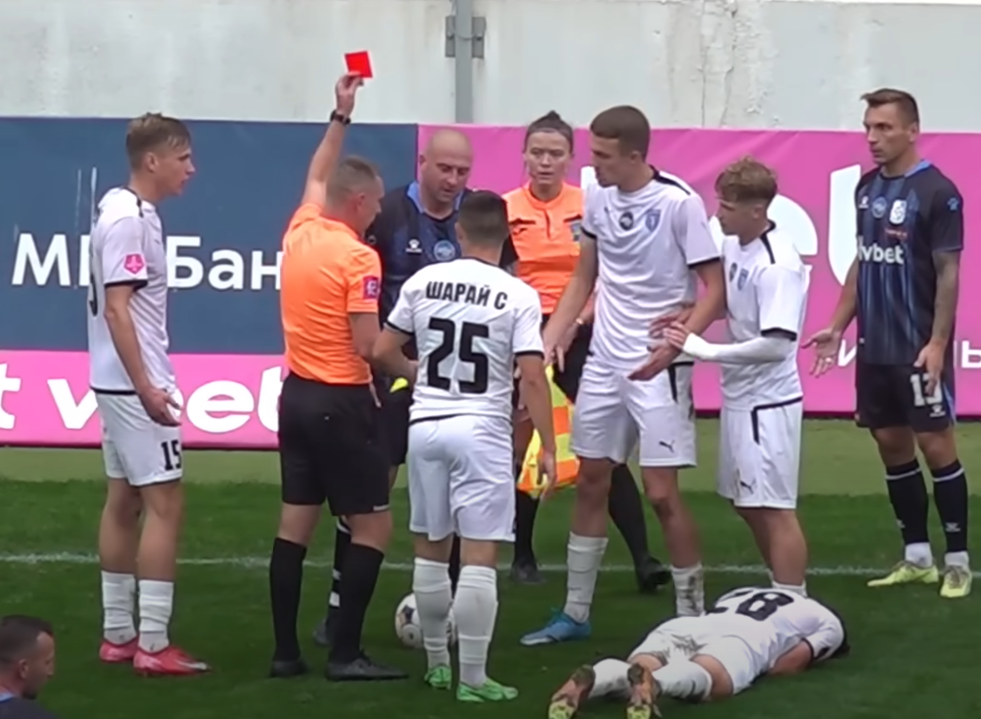 Yaroslav Rakitsky receives a red card. Screenshot: PFL/YouTube