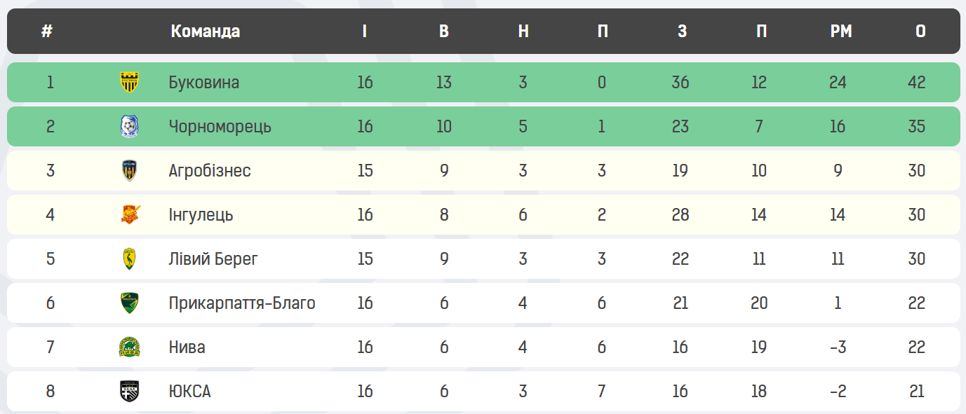 Standings of the First League. SCREEN SHOT: pfl.ua