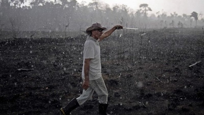 A farmer on the ashes in the state of Rondônia in western Brazil. Photo: AFP