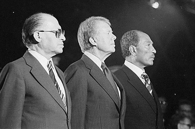 Israeli Prime Minister Menachem Begin, US President Jimmy Carter, and Egyptian President Anwar Sadat after the signing of the Camp David Accord. Photo: Wikipedia