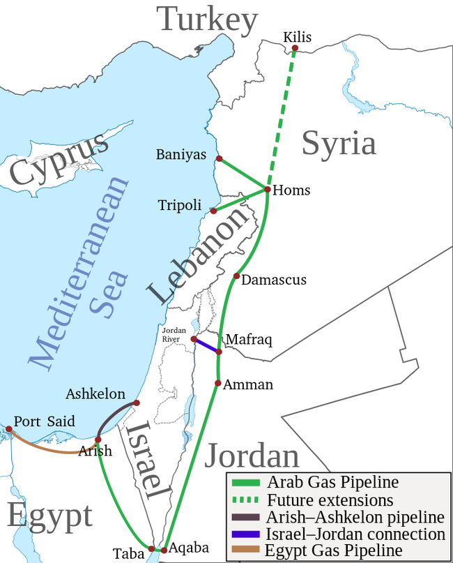 The Arabian gas pipeline on the map of the region. Map: Wikipedia