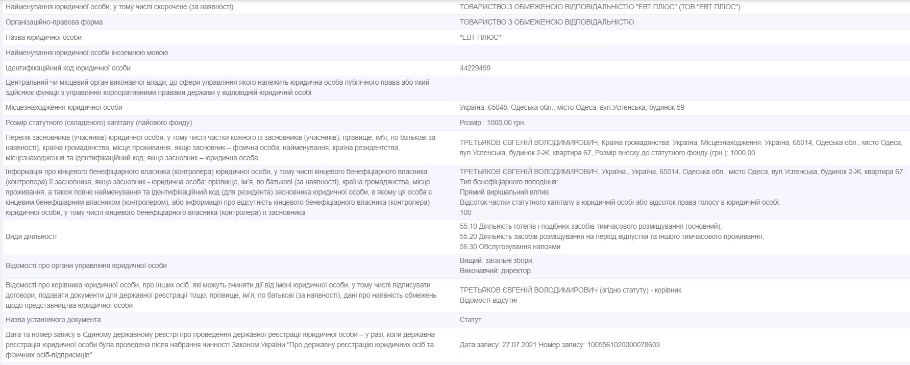 Щодо переможця конкурсу на оренду туалетів, то компанія "ЕВТ Плюс" зареєстрована 27 липня 2021 року тобто за шість днів до аукціону.