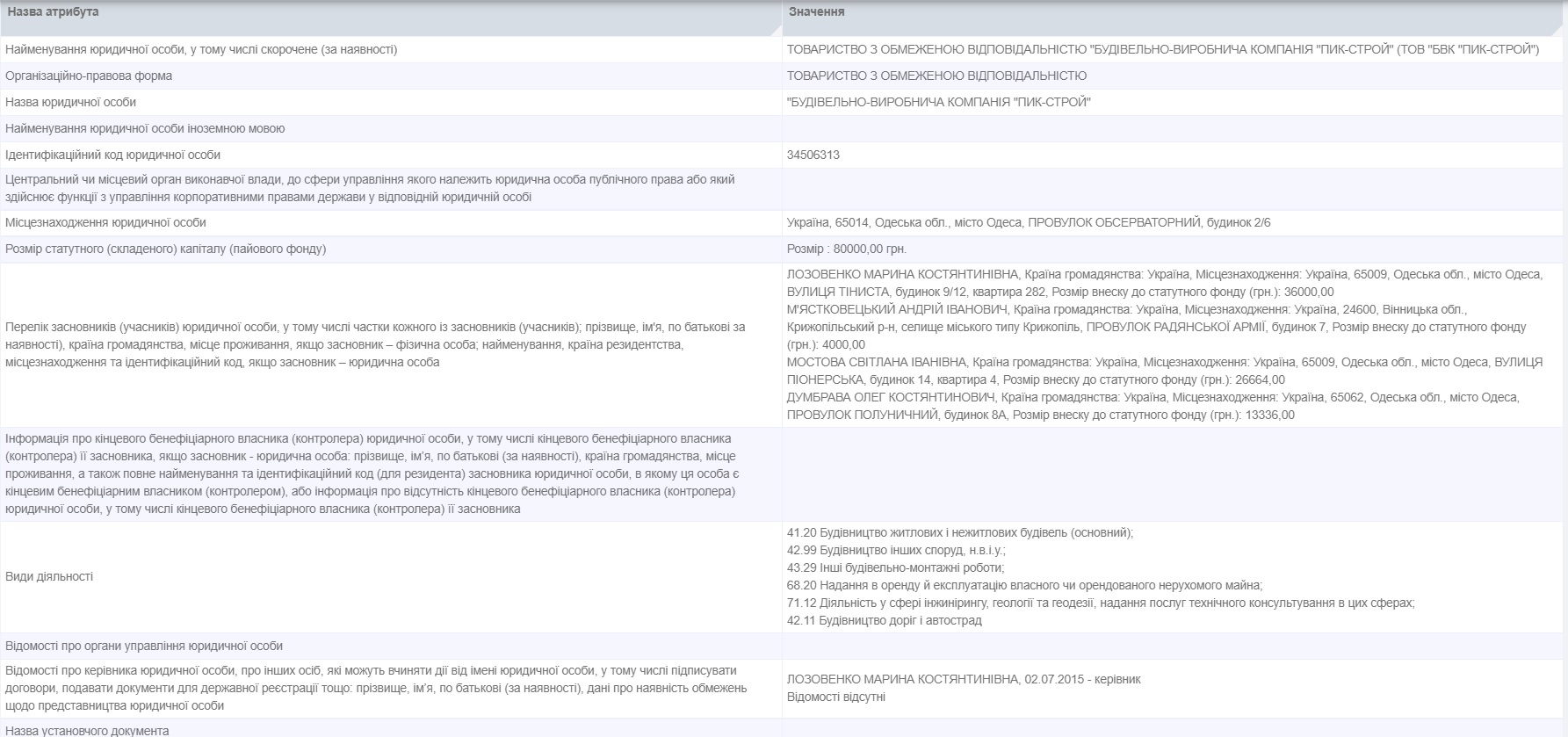 Як зазначається в соціальних мережах йдеться про депутатку від партії Одеського міського голови «Довіряй ділам» Марину Лозовенко, яка є директоркою та однією із засновниць товариства з обмеженою відповідальністю «Будівельно-виробнича компанія "Пик-Строй"».