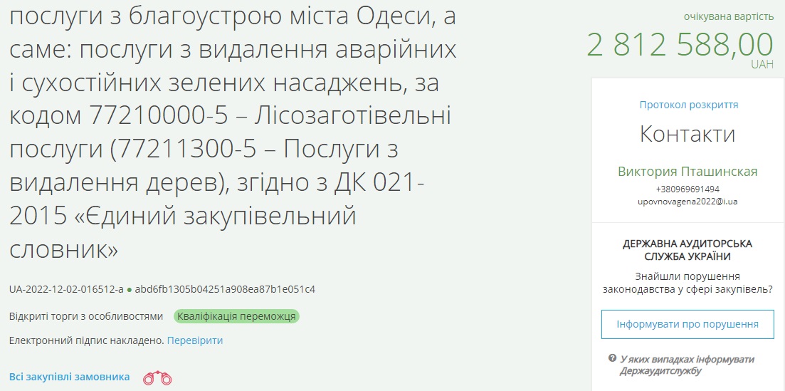 Закупівля проводилася як відкриті торги з особливостями тож конкурентів в компанії не було. Загалом в разі укладення угоди ТОВ отримає 2 мільйони 750 тисяч гривень.
