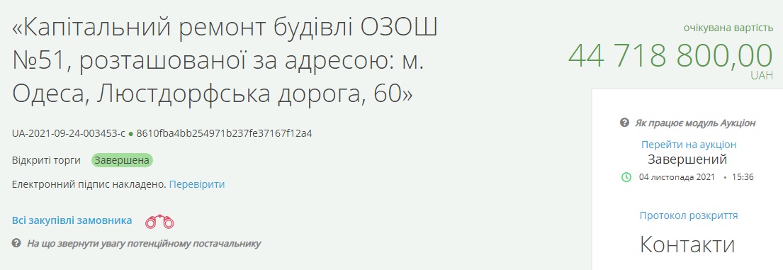 Також аукціон щодо ремонту в цій школі оголошували 24 вересня 2021 року. Він навіть відбувся, як й було заплановано 4 листопада того року.