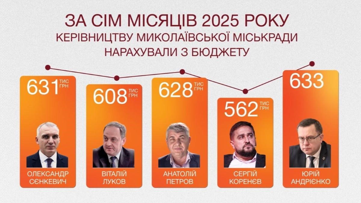 Такі дані містяться у відповіді Миколаївської міськради на запит Nikcenter про виплати керівництву мерії за перші сім місяців 2025 року.
