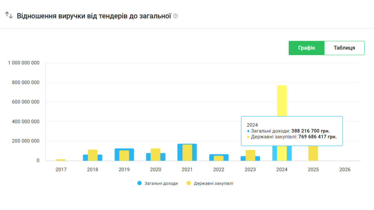 За даними YouControl, компанія існує з 2017 року, має статутний капітал 10 мільйонів гривень, а її засновником є Сергій Толстіков. З 2017 року фірма виграла держпідрядів на 1,8 мільярда гривень, а лише у 2024 році її дохід становив 769 мільйонів.