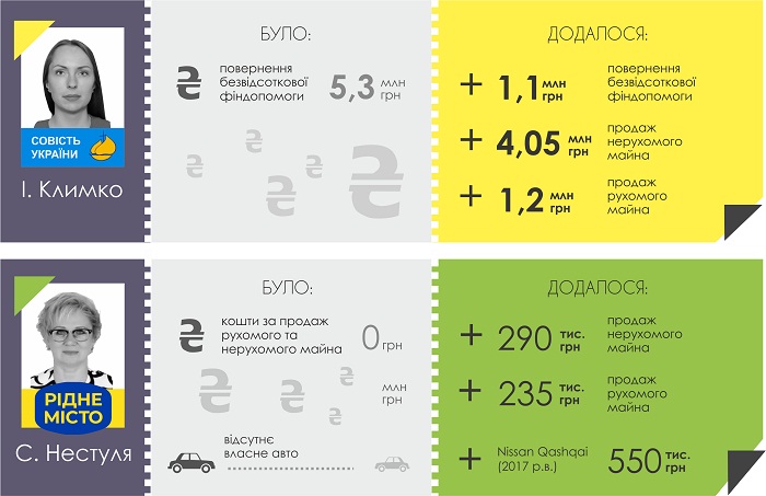 Третю позицію за кількістю коректив, внесених до декларації, утримує теж представниця "Рідного міста" Світлана Нестуля. Згідно зі сповіщеннями, у депутатки поменшало нерухомості, за продаж якої вдалося отримати 290 тис. грн. Також Світлана Нестуля повідомляла про продаж рухомого майна на 235 тис. 800 грн та купівлю автівки Nissan Qashqai (2017 р.в.) за 550 тис. грн у свого сина Юрія Нестулі.