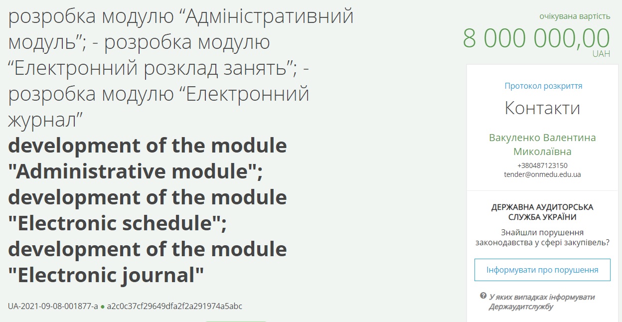Одеський національний медичний університет оголосив тендер на придбання трьох послуг в одній закупівлі. Усі вони пов'язані з програмним забезпеченням. Про це повідомив вебпортал Prozorro.
