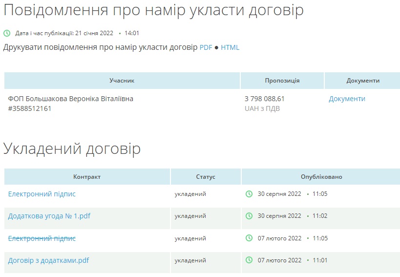 Пропозиція ФОП була найдорожчою з усіх, проте саме Вероніку Большакову визнали переможницею тендеру.
