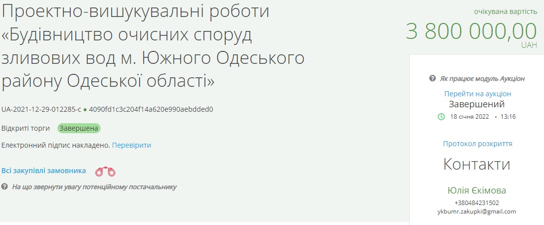 ФОП мала виконати проєктно-вишукувальні роботи для будівництва очисних споруд зливових вод Южного.
