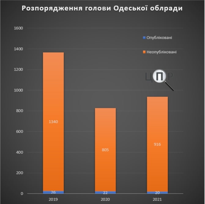 За 2021 рік опублікували лише 2 відсотки розпоряджень голови Одеської облради