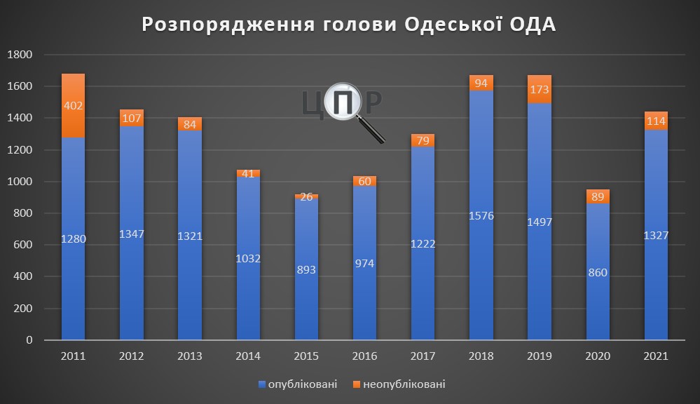 За 2021 рік на сайті Одеської ОДА опубліковано 1 тис. 327 розпорядження, що складає 92%.
