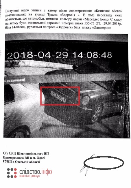 За даними, які видання отримали одразу від декількох джерел в правоохоронних органах, цей Mercedes-Benz належить родині тодішнього радника голови поліції в Одеській області Руслана Форостяка.
