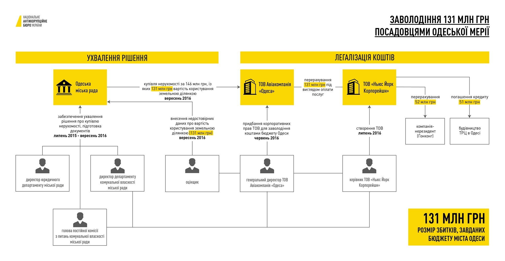 146 млн грн, які у 2016 року надійшли комерційній компанії від департаменту комунальної власності Одеської міської ради як оплата за будівлі та споруди, її власники вивели та легалізували через низку суб’єктів господарювання.