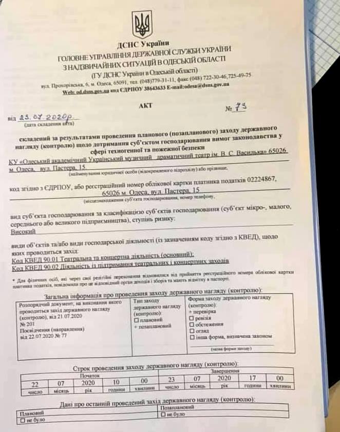 Вчора, 23 липня, представники ДСНС, ретельно перевіривши усунуті недоліки в Одеському академічному українському музично-драматичному театрі ім. В. Василька, визнали й підтвердили, що все виконано бездоганно і до театру зауважень немає.