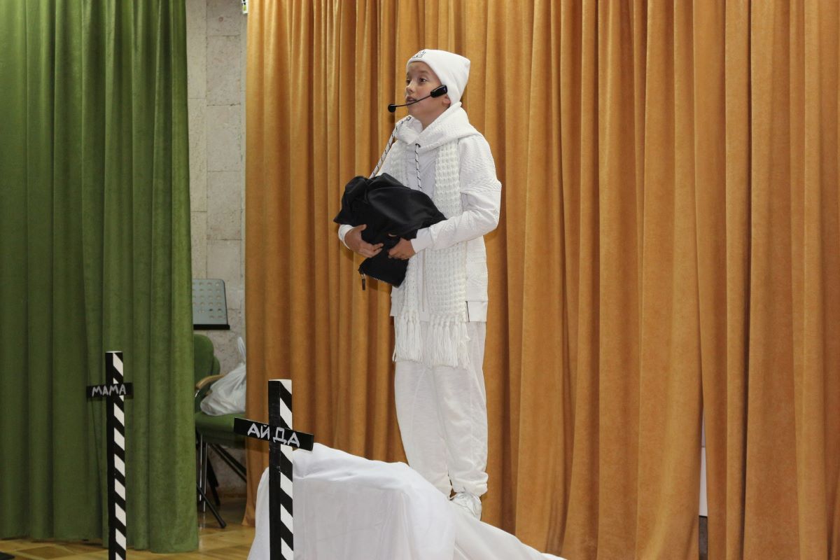 У Миколаєві представили моновиставу про маленького маріупольця, роль якого виконував юний актор.