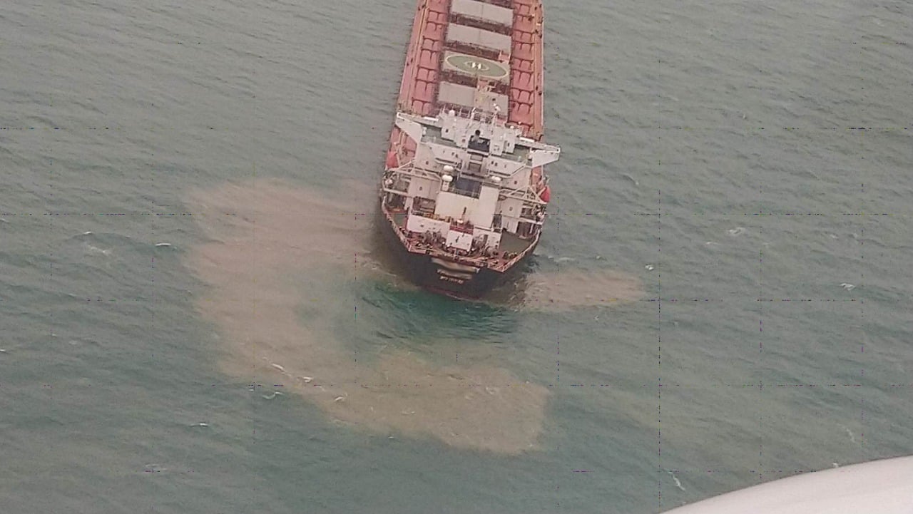 Літак Одеської ескадрильї Держприкордонслужби під час повітряного патрулювання над Чорним морем виявив велику буру пляму біля вантажного судна.