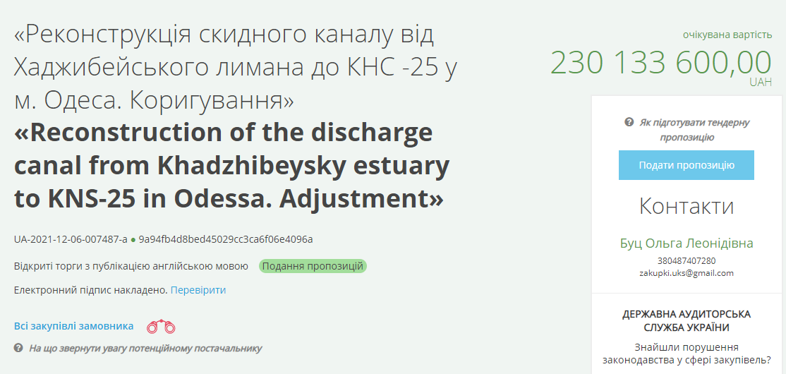 Обидві тендерні пропозиції приймаються до 6 січня, а аукціон відбудеться 11 лютого 2022 року.