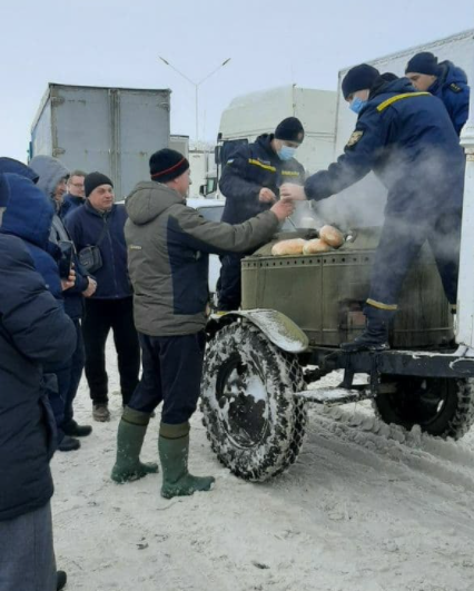 Також, пресцентр ДСНС повідомляє, що працівники служби спільно з приватними підприємцями надавали предмети першої необхідності водіям - далекобійникам, які довгий час перебувають у заторі.