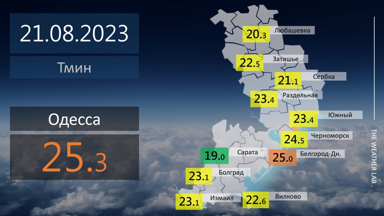 17 серпня спеціалісти каналу прогнозували впродовж тижня спекотну та суху погоду. Аномалія за температурою за підрахунками спеціалістів має складати 3,5-4 градуси вище за норму. Утім 21 серпня в Одеській області було значно холодніше ні 20 серпня.