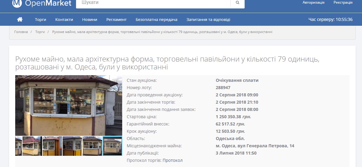 79 киосков "Одесского каравая" проданы с аукциона за общую сумму 10,6 млн грн.
