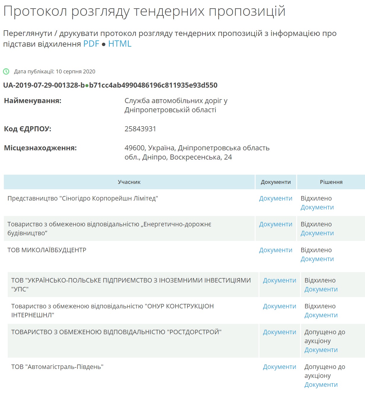 Відхилили документи компаній: Представництво «Сіногідро Корпорейшн Лімітед», ТОВ «Енергетично-дорожнє будівництво», ТОВ «Миколаївбудцентр», ТОВ «Українсько-польське підприємство з іноземними інвестиціями «УПС»» та ТОВ «ОНУР Конструкціон інтернешнл».