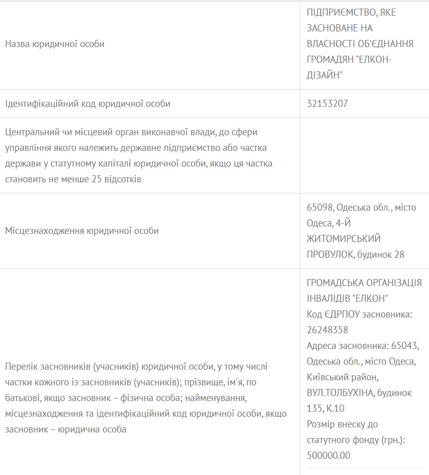 Згідно з реєстром юридичних осіб, фізичних осіб-підприємців та громадських формувань, ця компанія належить громадській організації інвалідів «Елкон», засновниками якої є Павло Олін, Леонід Почтаренко, Анатолій Девіль і Олена Крутик. А керує фірмою Валерій Крутик.
