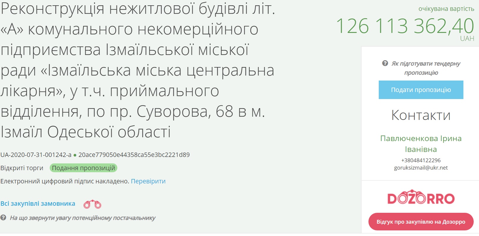 Управління капітального будівництва Ізмаїльської міської ради оголосило тендер задля вибору підрядника якому заплатять за реконструкцію нежитлової будівлі літ. «А» комунального некомерційного підприємства «Ізмаїльська міська центральна лікарня».