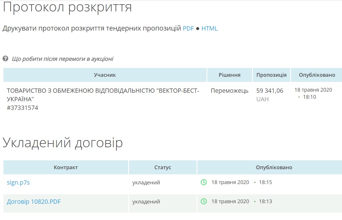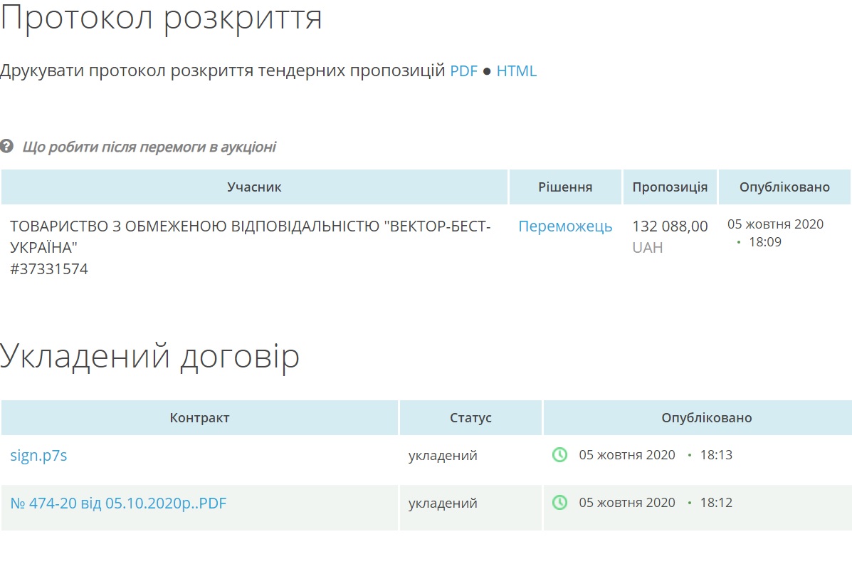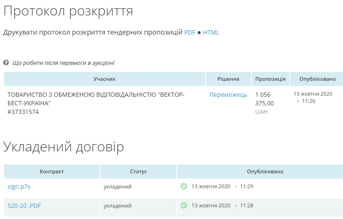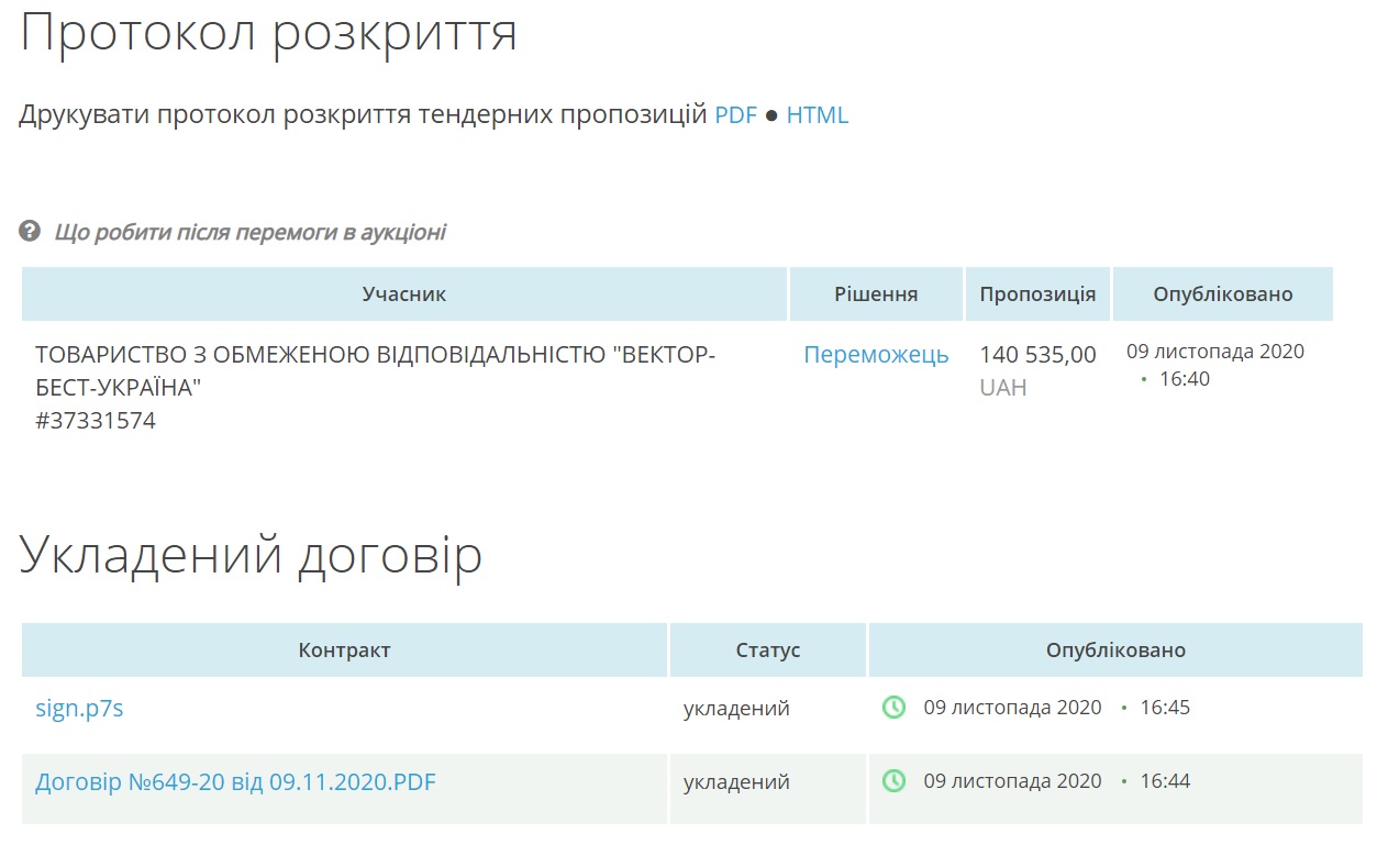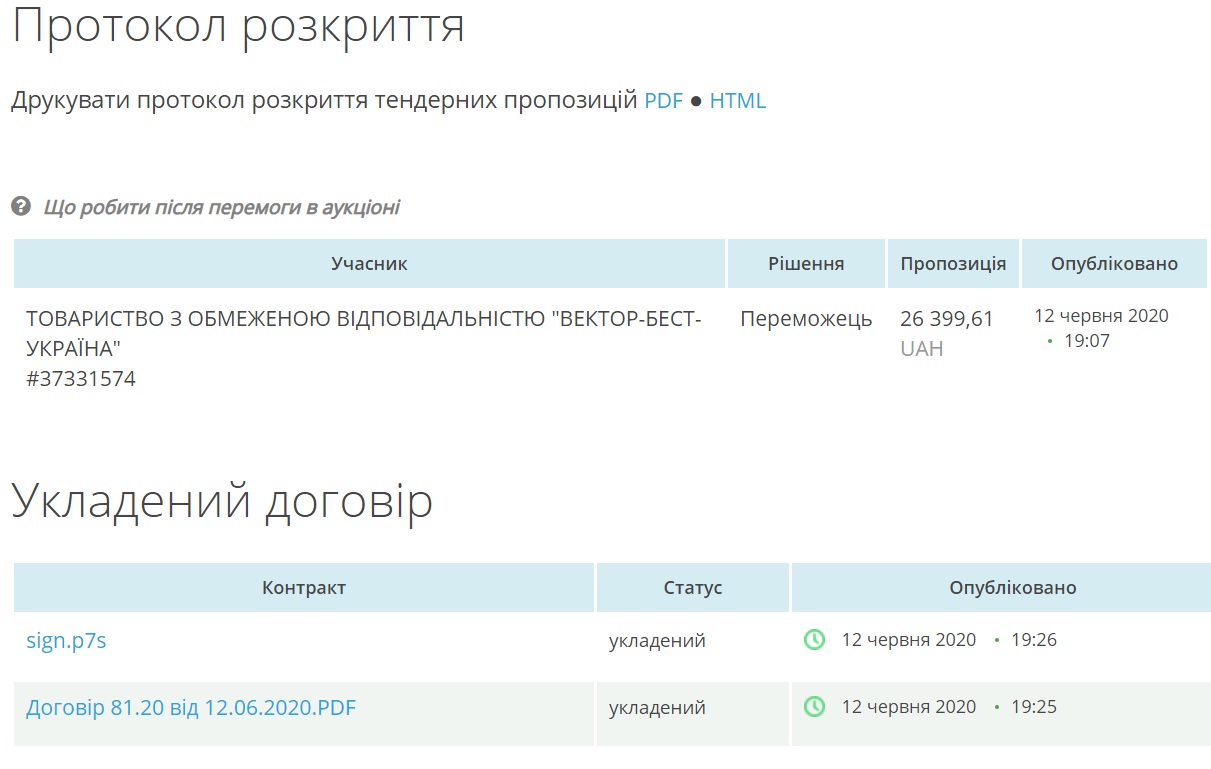 Такі дані оприлюднені у системі електронних закупівель Prozorro.