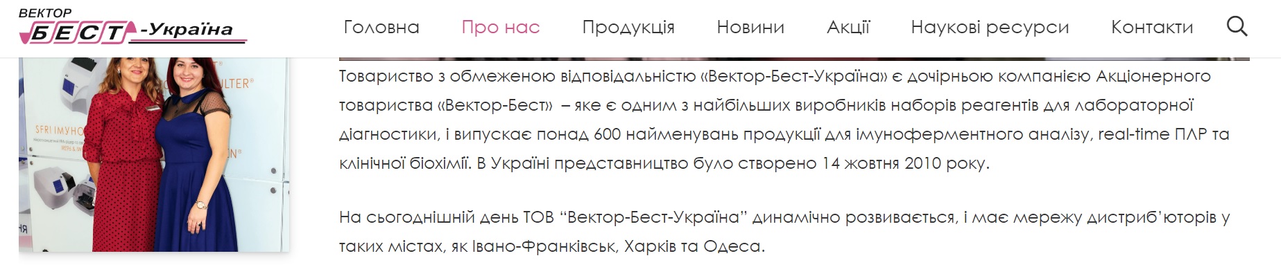 Товариство з обмеженою відповідальністю «Вектор-Бест-Україна» є дочірньою компанією Акціонерного товариства «Вектор-Бест».