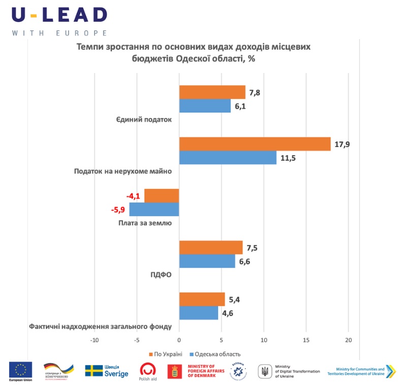 Таким чином, за всіма основними доходними джерелами темпи зростання в Одеській області менші за середні показники по Україні.