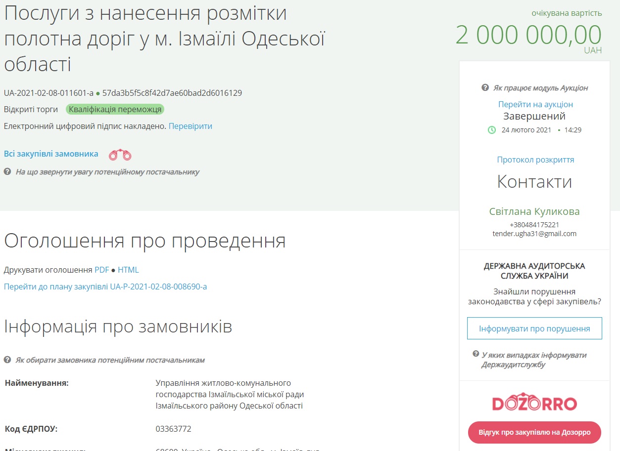 Управління житлово-комунального господарства Ізмаїльської міської ради Ізмаїльського району Одеської області провело тендер для пошуку компанії, якій заплатять за послуги з нанесення розмітки полотна доріг міста.