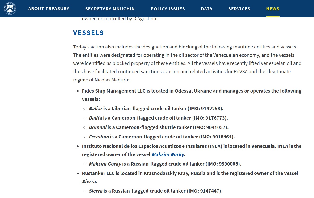 Міністерство фінансів Сполучених штатів Америки запровадили санкції проти української компанії Fides Ship Management, яку звинувачують у перевезенні венесуельської нафти.