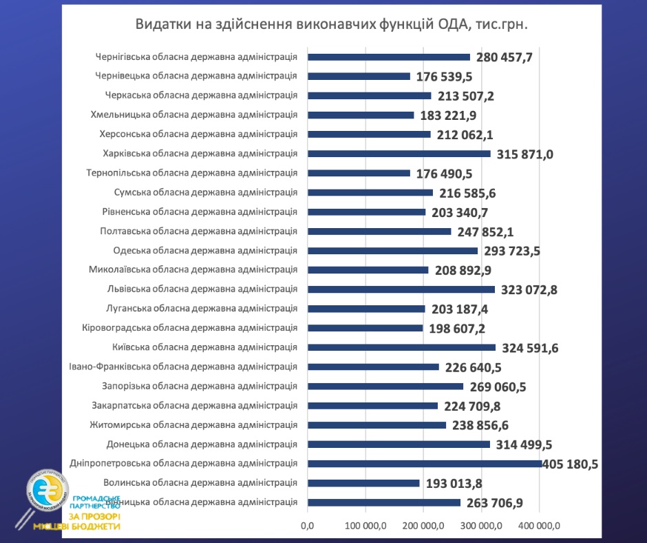 Як зазначає експерт Громадського партнерства "За прозорі місцеві бюджети", координатором якого є Одеська обласна організація "Комітету виборців України, Вячеслав Голинський, загалом, на здійснення виконавчої влади 24 обласними державними адміністраціями в Державному бюджеті на 2021 рік затверджено 5,9 млрд грн.