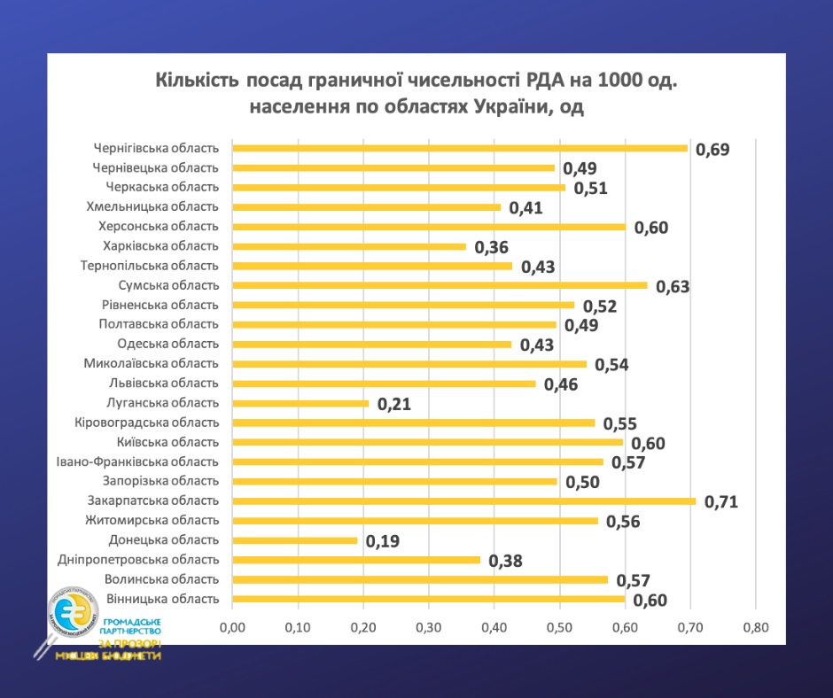 Тобто на одну тисячу мешканців області буде налічуватись меньше одного працівника адміністрацій.