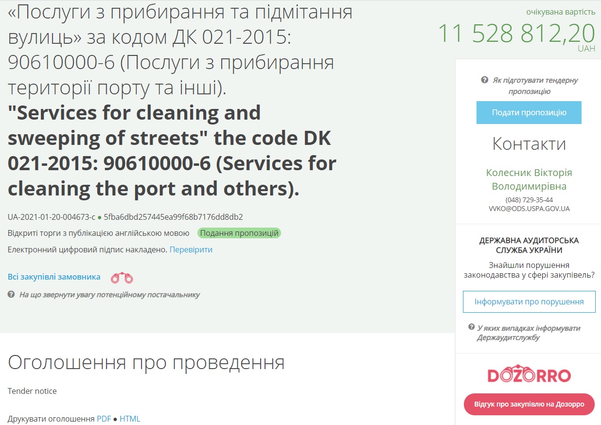 За даними системи, компанія-переможець буде повинна буде прибирати: