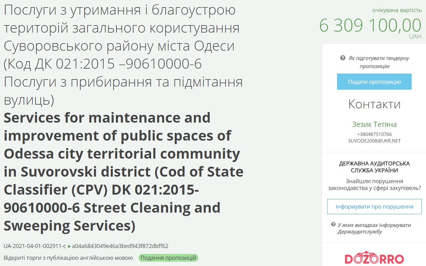 Суворовська районна адміністрація Одеської міської ради оголосила тендер для обрання компанії, яка прибиратиме та підмітатиме вулиці району.