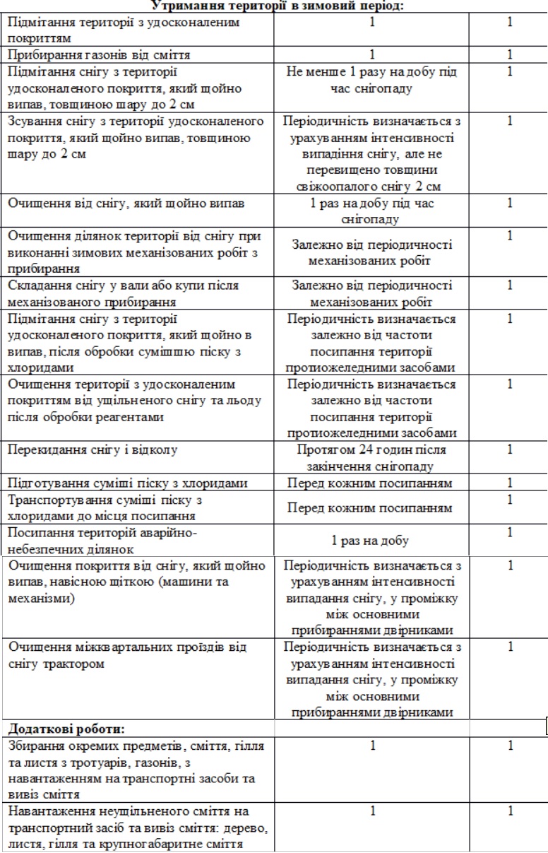 - двічі на місяць прибиратимуть покриття машиною вакуумною підмітально-прибиральною.