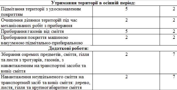 - чотири рази на місяць підмітатимуть території з удосконаленим покриттям,