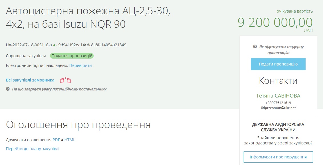 Відповідна інформація міститься у системі електронних закупівель Prozorro.