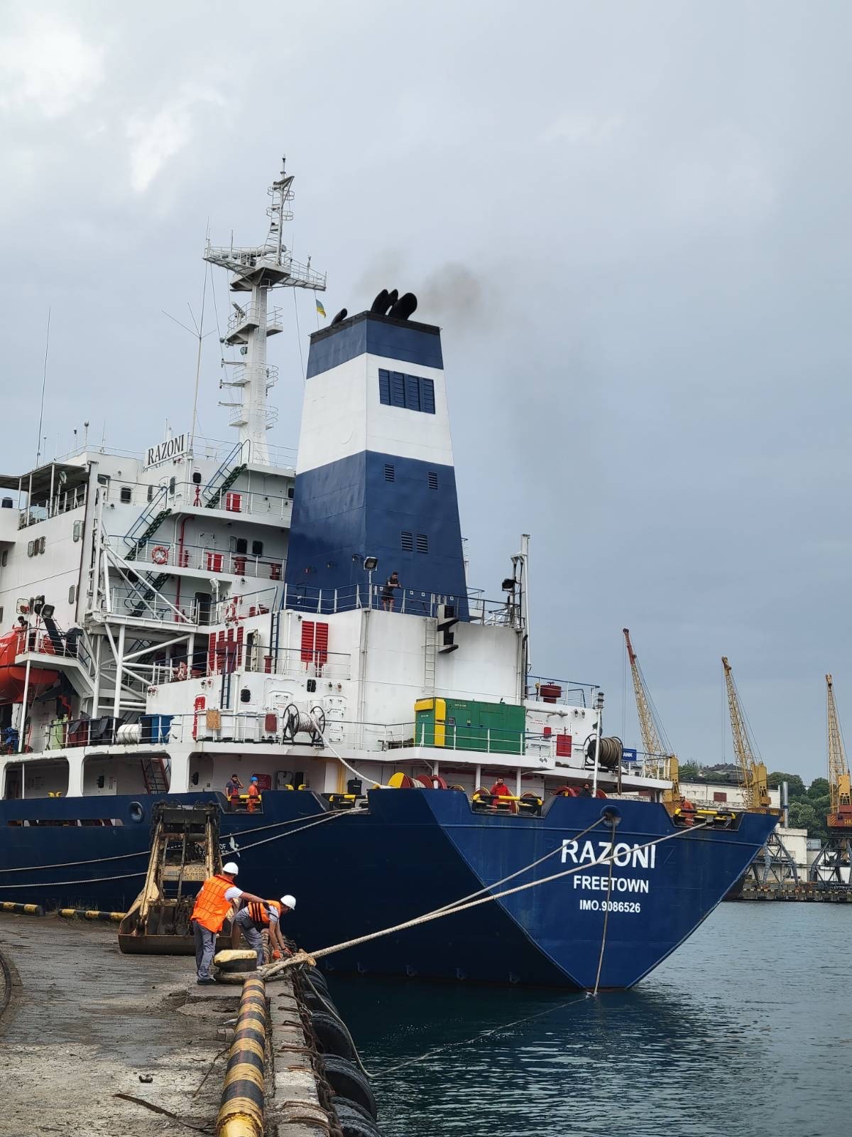 Йдеться про судно Razoni, яке під прапором Сьєрра-Леоне прямує до порту Тріполі у Лівані. Воно рухатиметься коридором, безпеку якого підтверджено нашими партнерами-гарантами – ООН та Туреччиною. На його борту 26 тисяч тонн української кукурудзи.